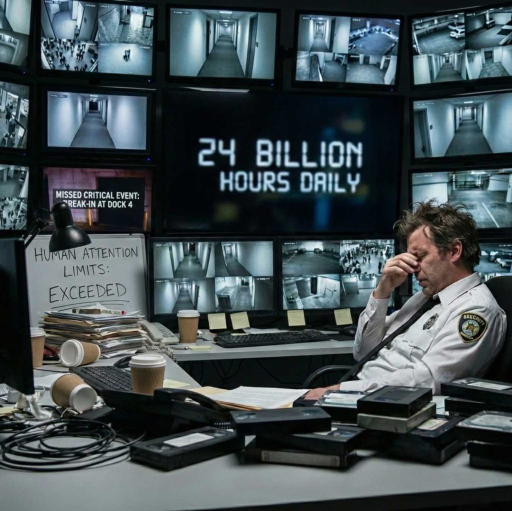Over 24 billion hours of CCTV footage are generated daily—far beyond what humans can process.